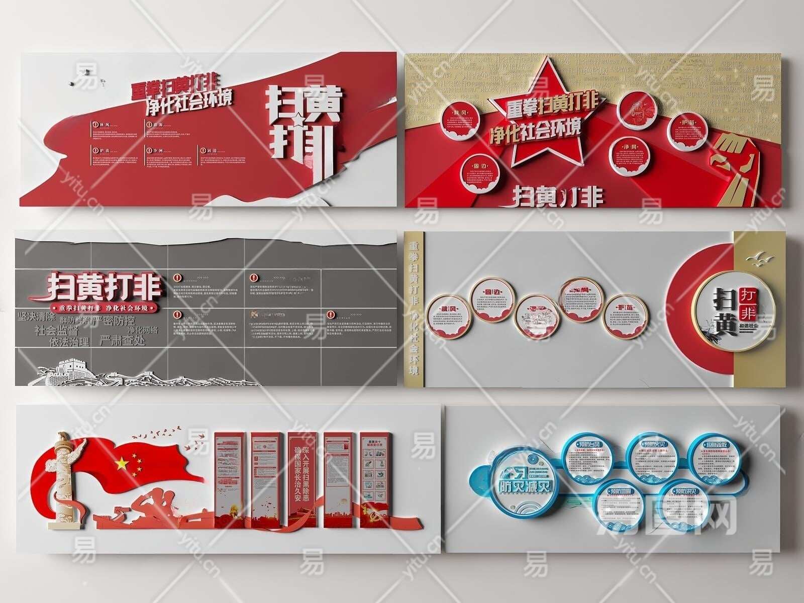 现代党建文化墙3D模型下载
