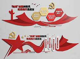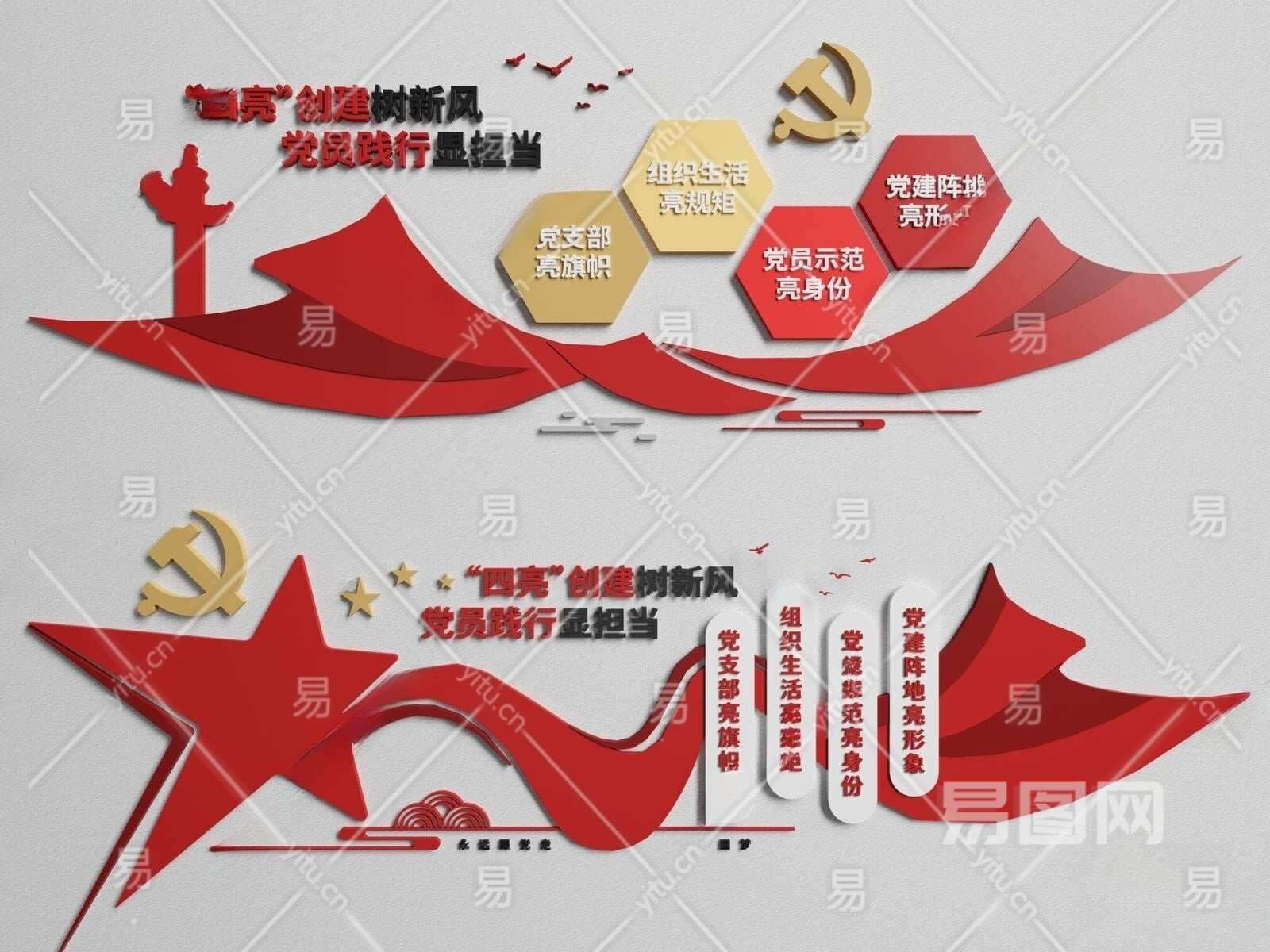 现代党建文化宣传墙3D模型下载
