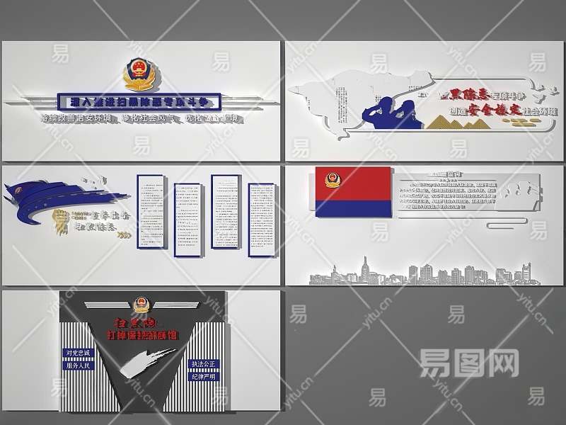 现代公安警察警队文化宣传墙3D模型下载
