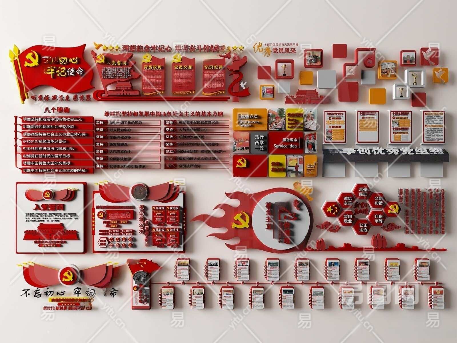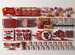 现代党建文化墙3D模型下载