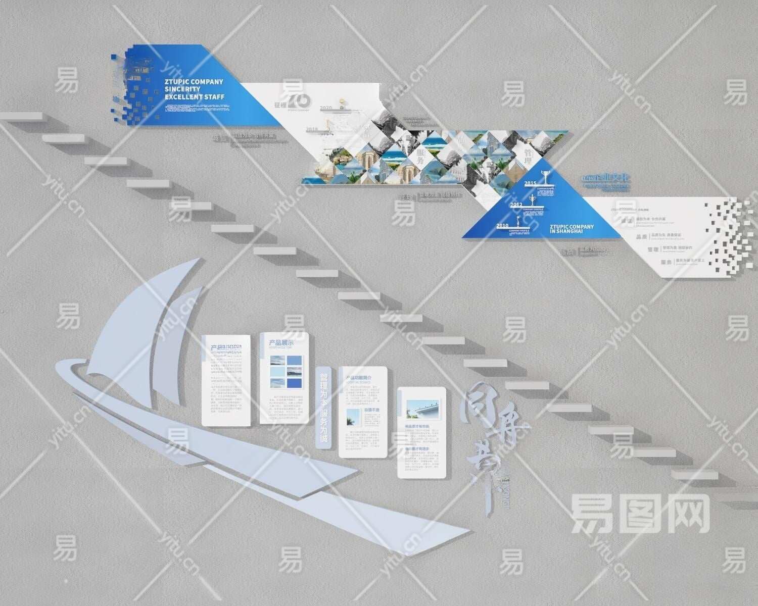 现代楼梯文化墙3D模型下载
