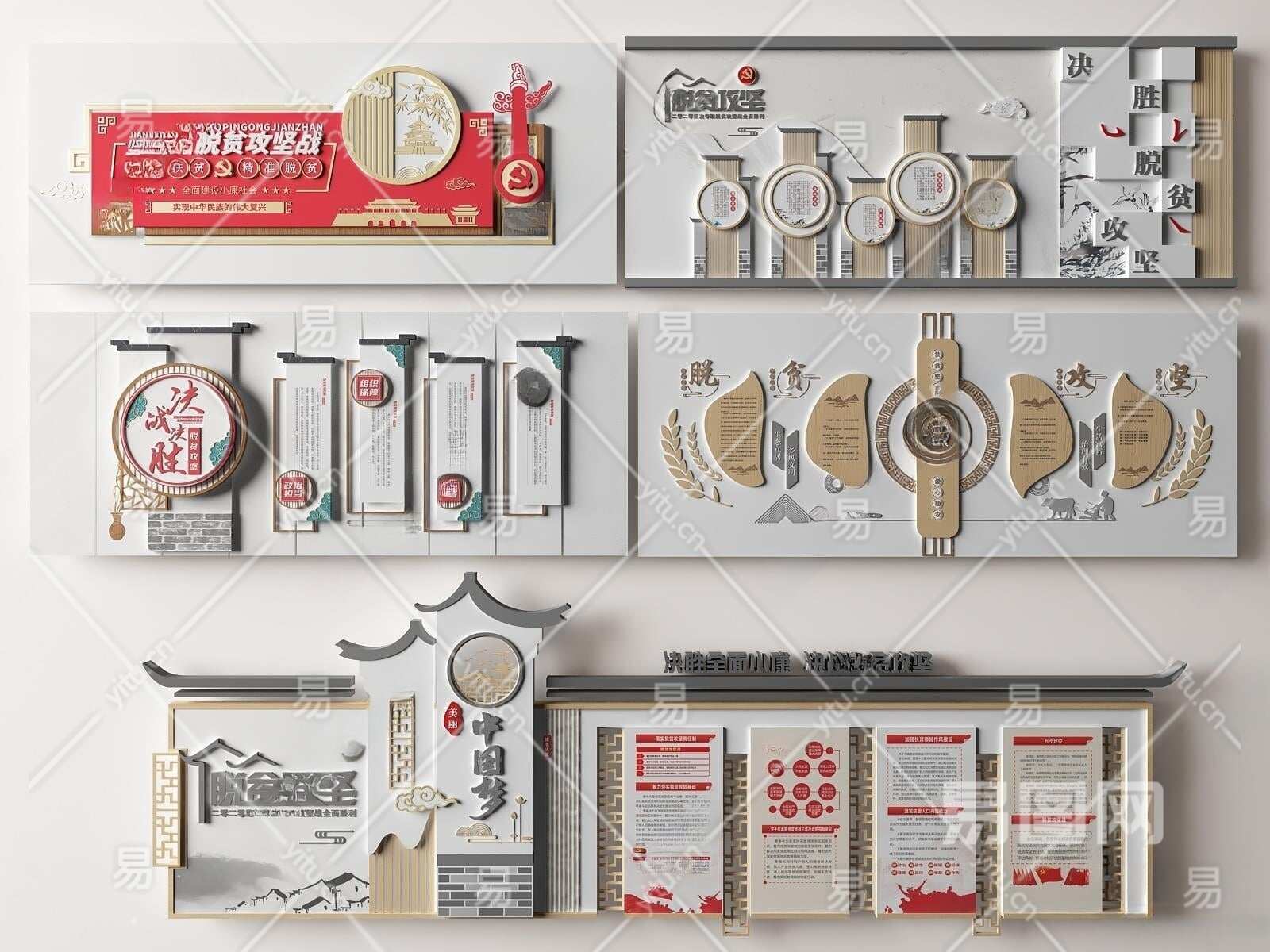 新中式党建文化墙3D模型下载