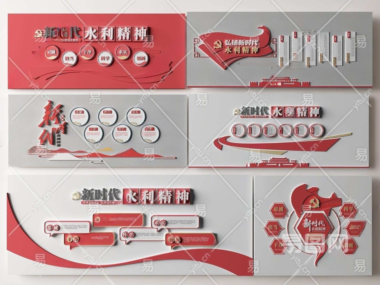 现代党建文化墙3D模型下载