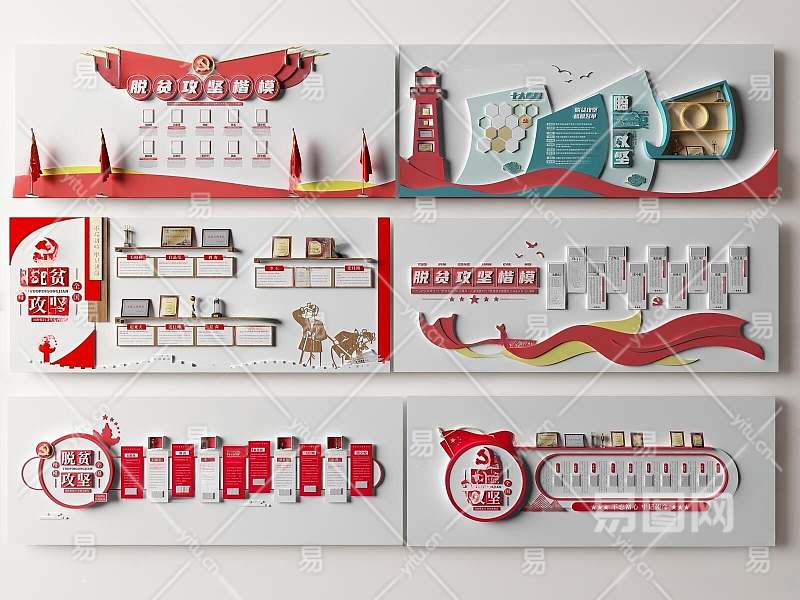 现代党建文化墙3D模型下载