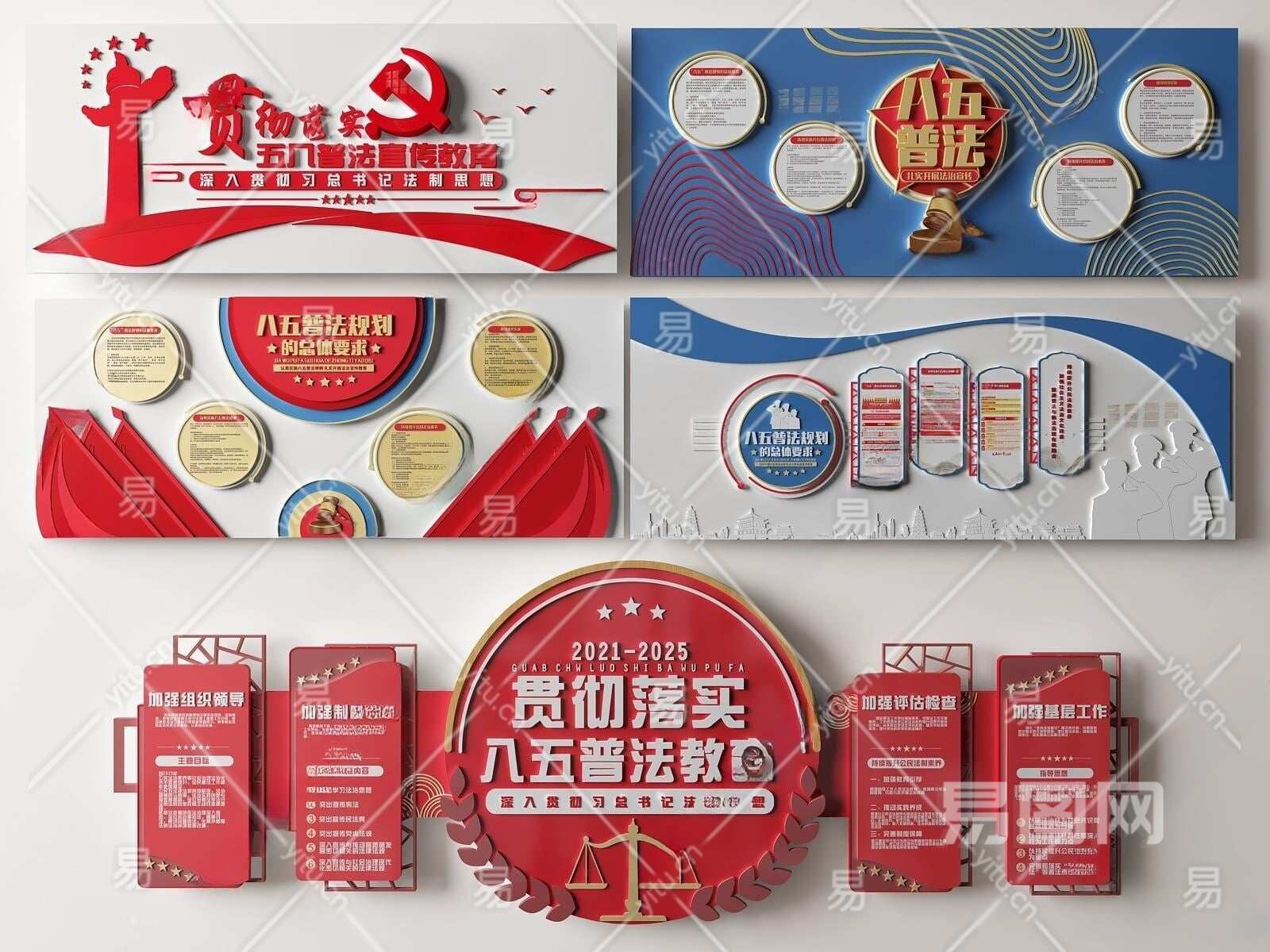 现代党建文化墙3D模型下载