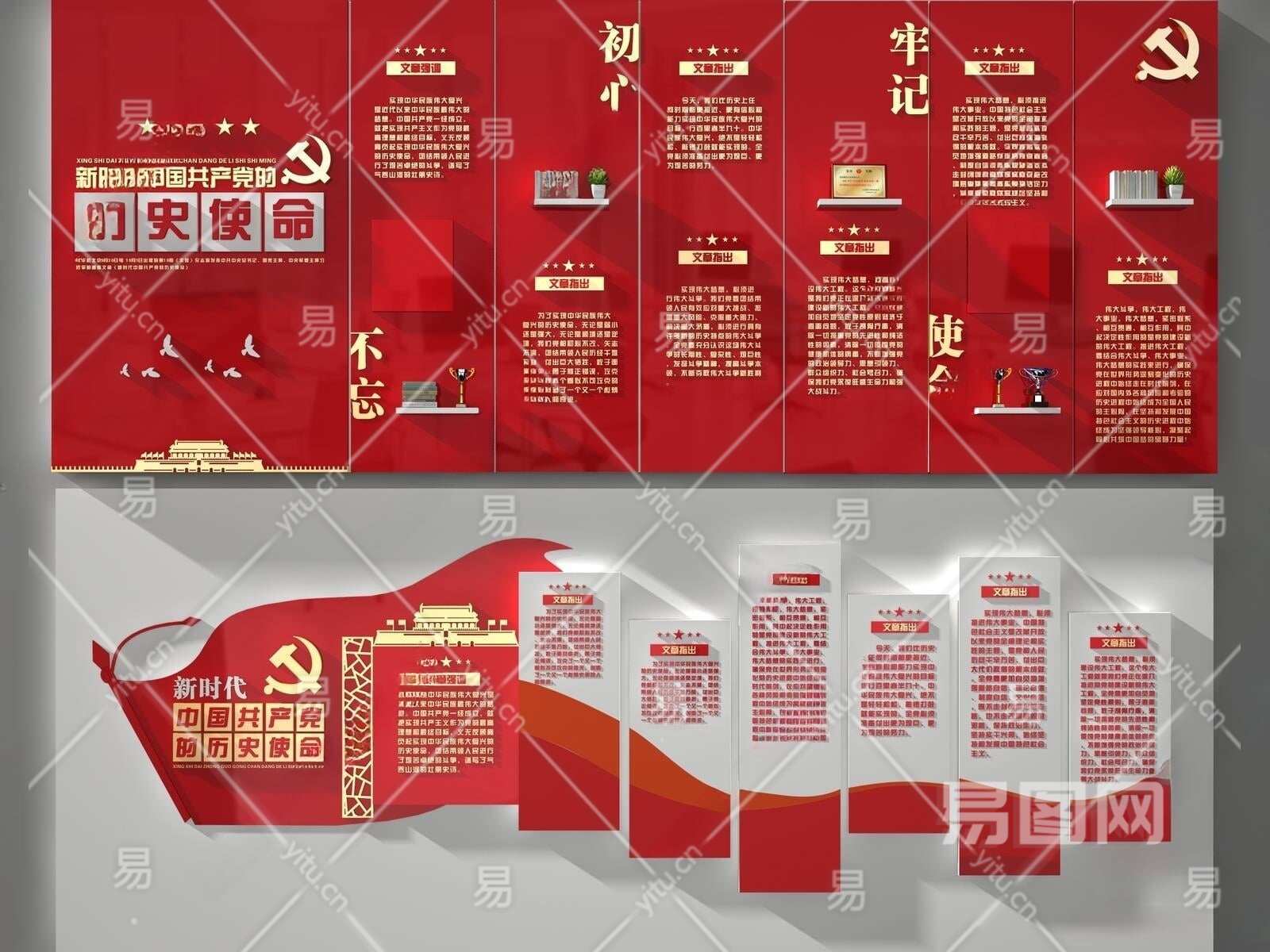 现代新时代中国共产党使命红色党建文化墙3D模型下载