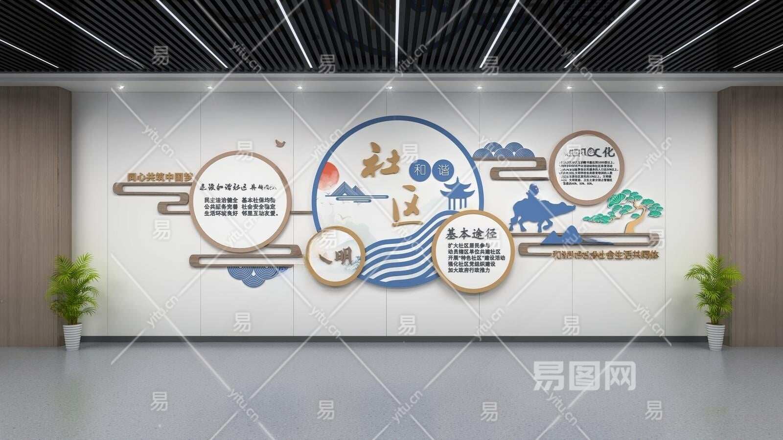 现代社区服务文化墙3D模型下载