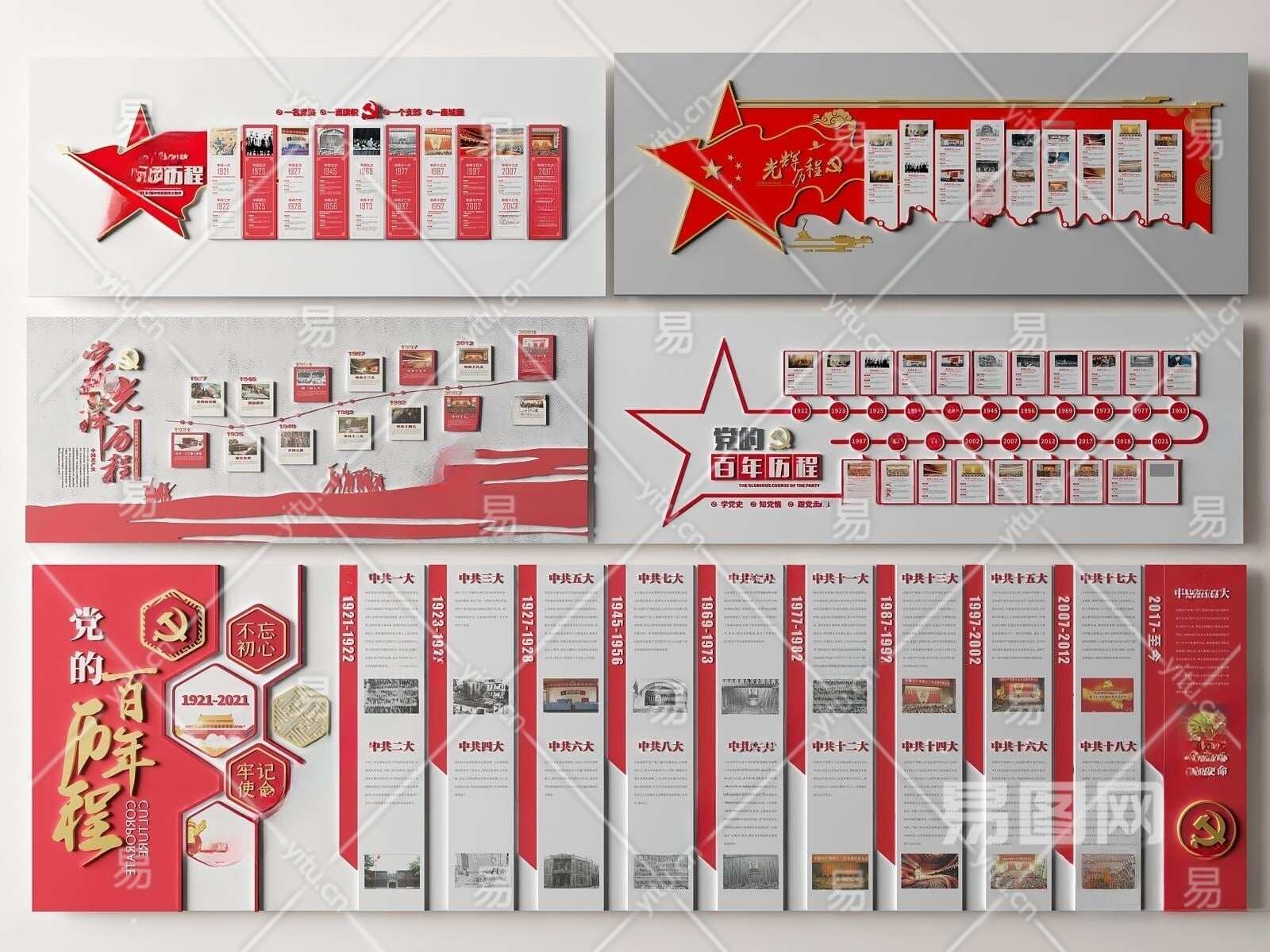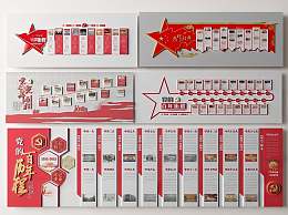 现代党建文化墙3D模型下载