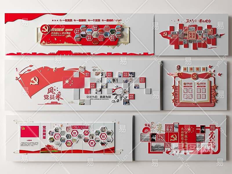 现代党建文化墙3D模型下载