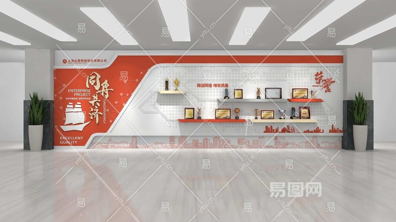 现代企业发展荣誉展示墙3D模型下载