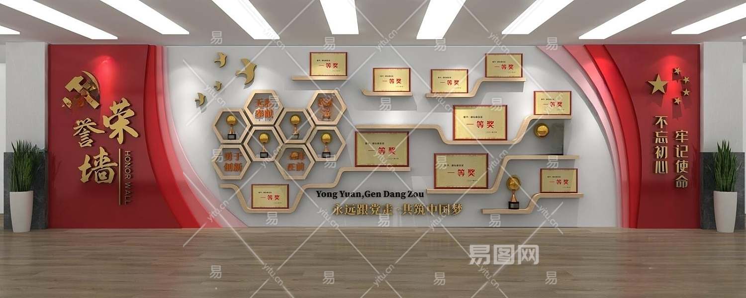现代党建荣誉墙3D模型下载