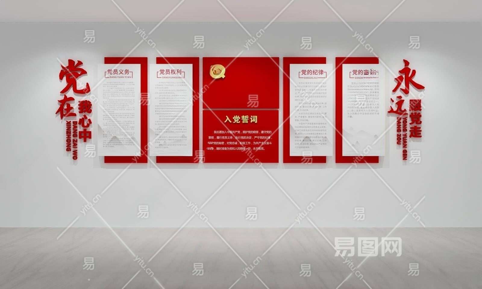 现代入党誓词文化墙文化墙3D模型下载