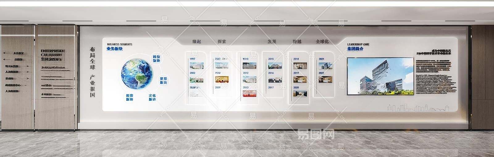 现代企业文化宣传墙3D模型下载