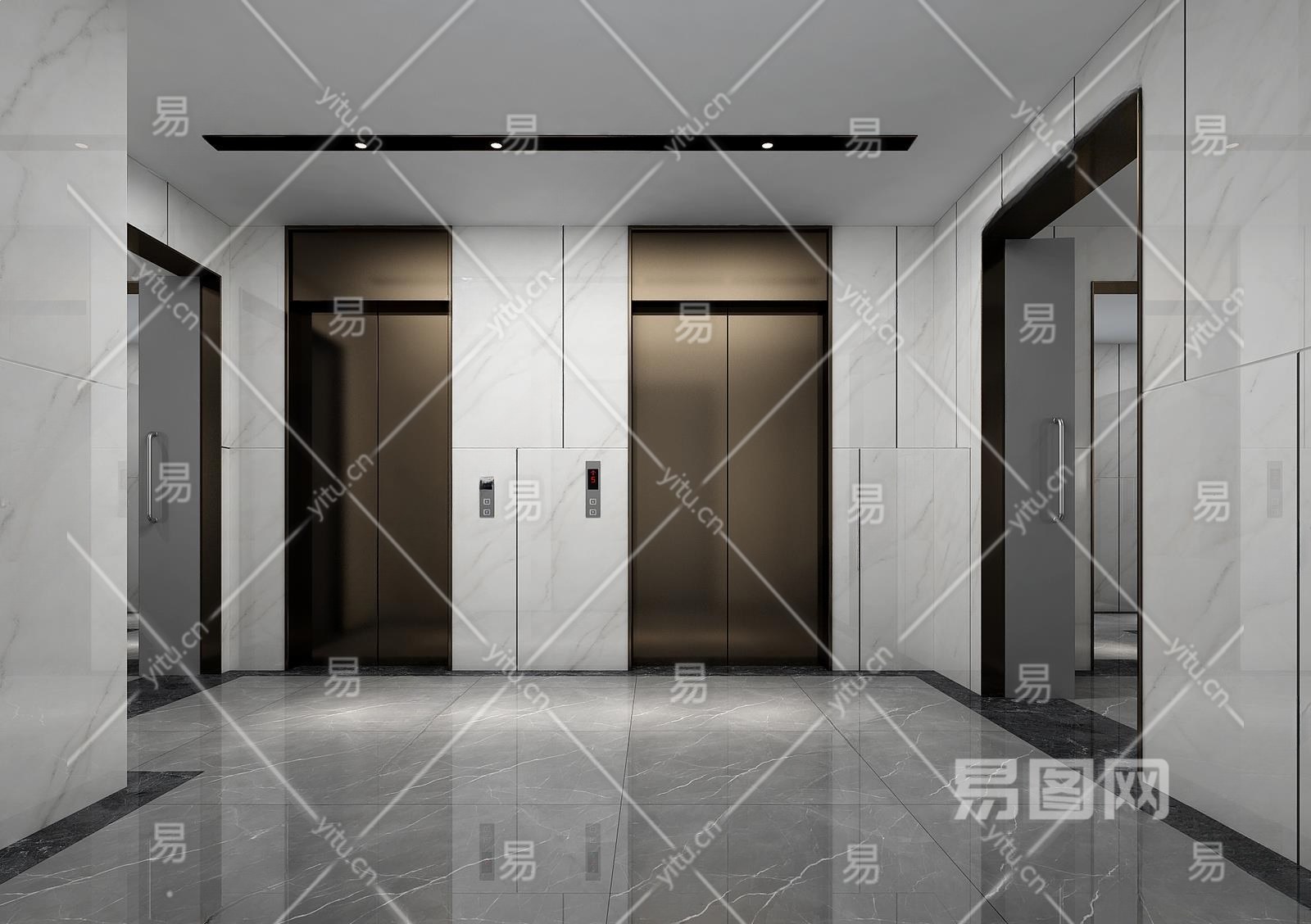 现代电梯间3D模型下载