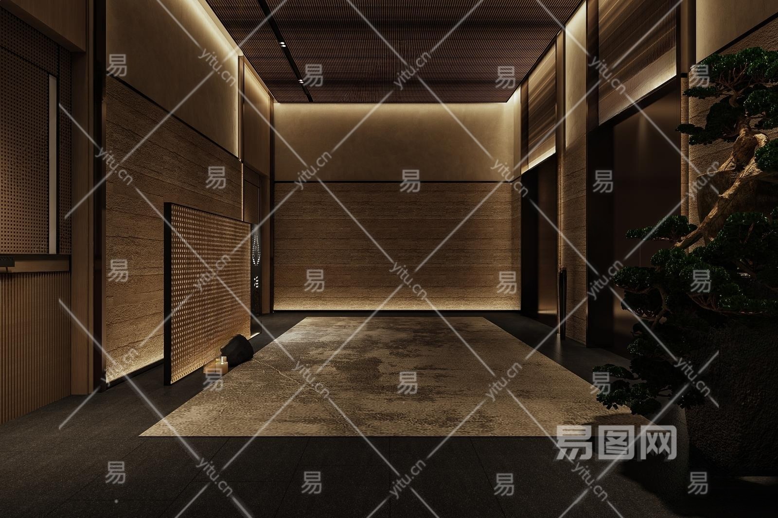 中式美容SPA店电梯厅3D模型下载