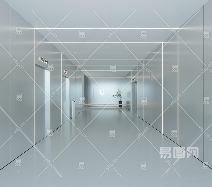 现代极简电梯间3D模型下载