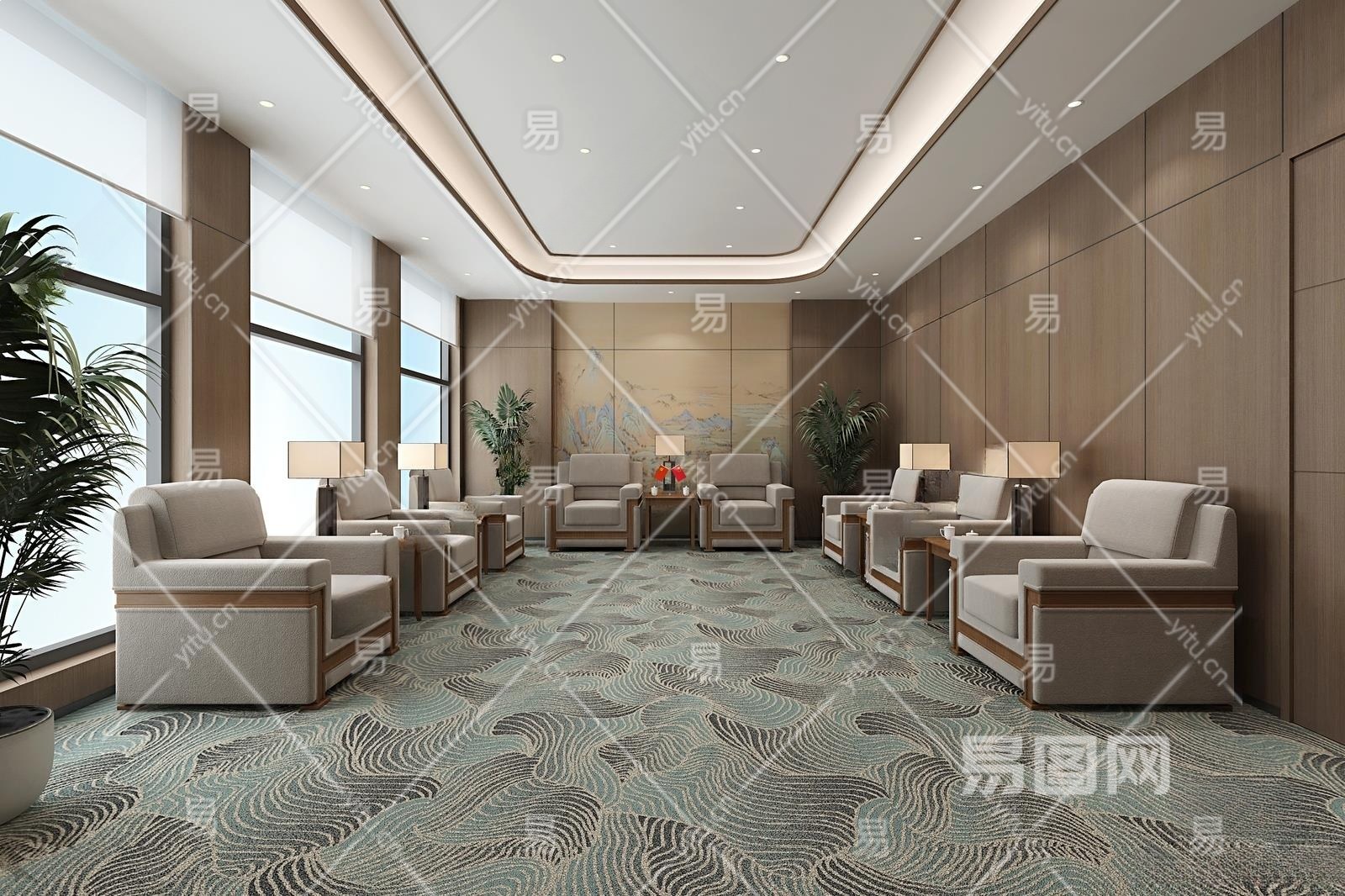 新中式接待室3D模型下载