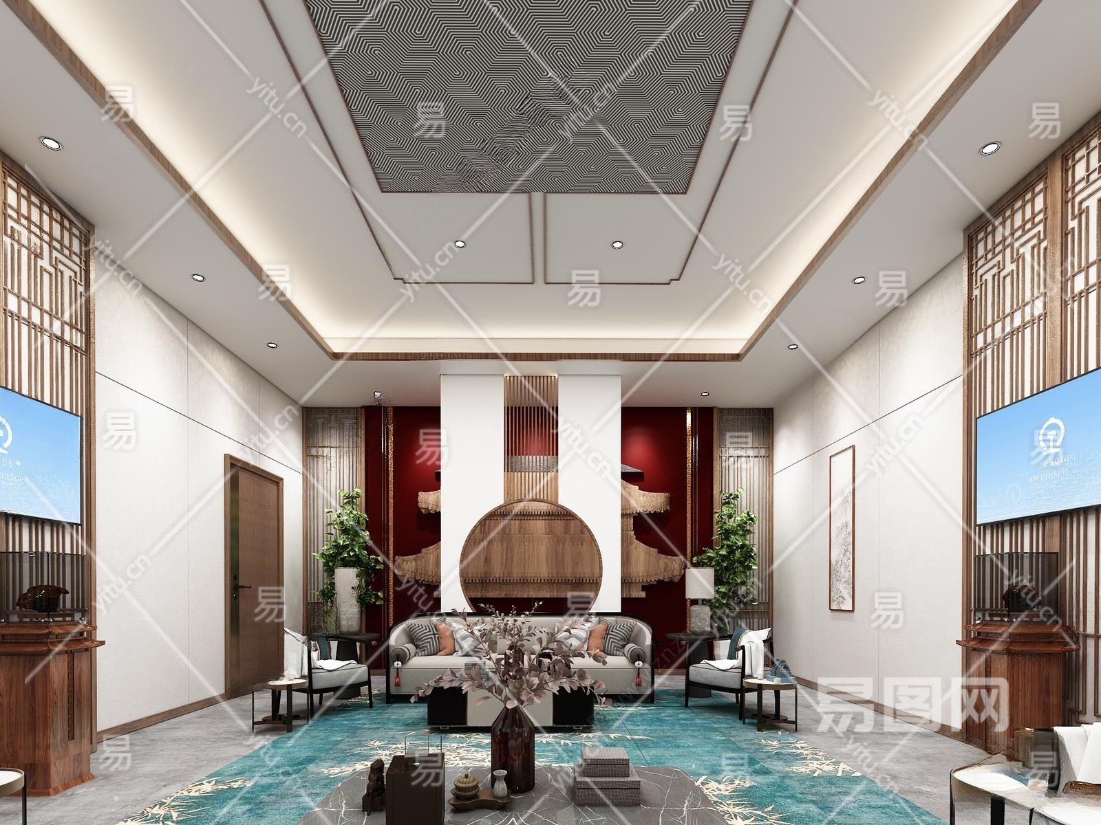 新中式接待室3D模型下载