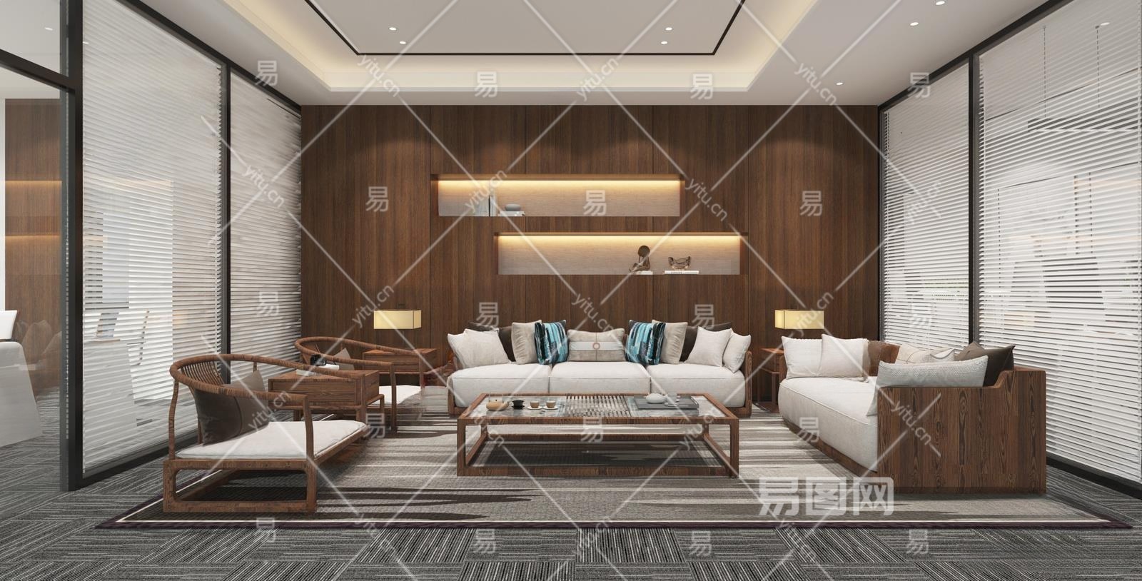 新中式接待室3D模型下载