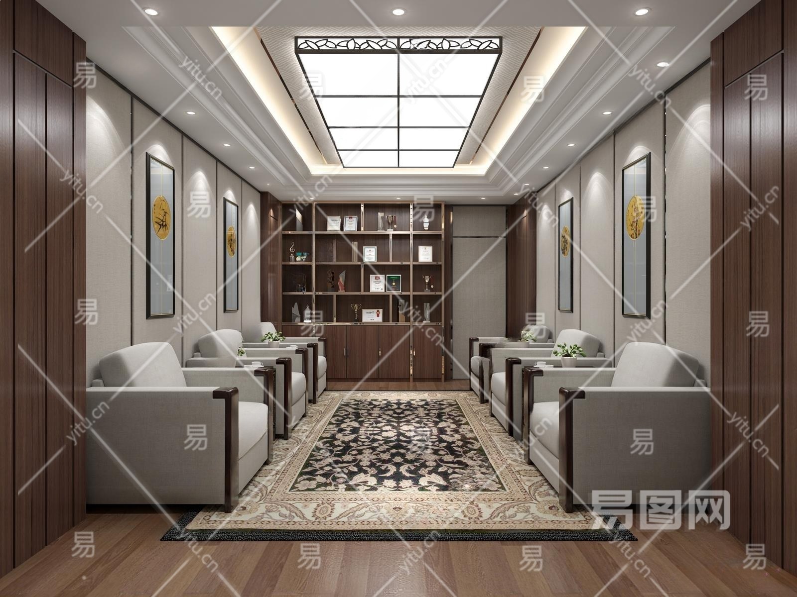 新中式会客室3D模型下载