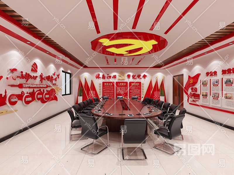 现代党建会议室3D模型下载