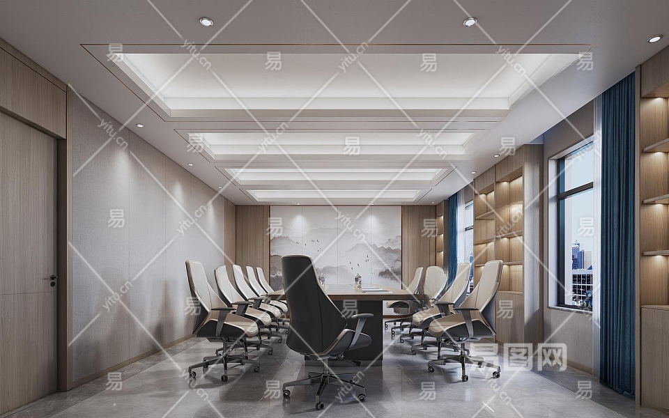新中式会议室3D模型下载