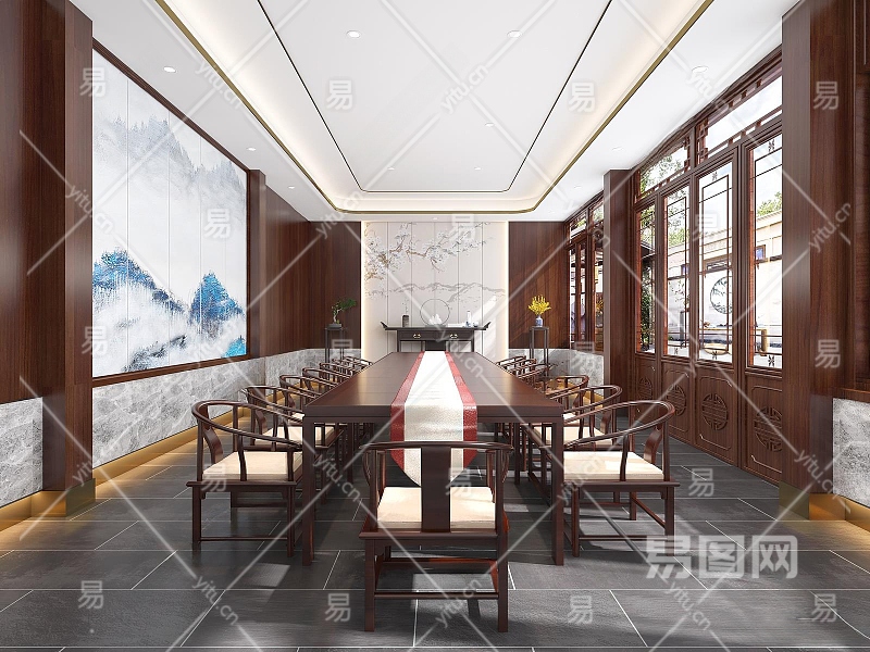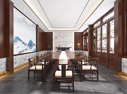 新中式会议室3D模型下载