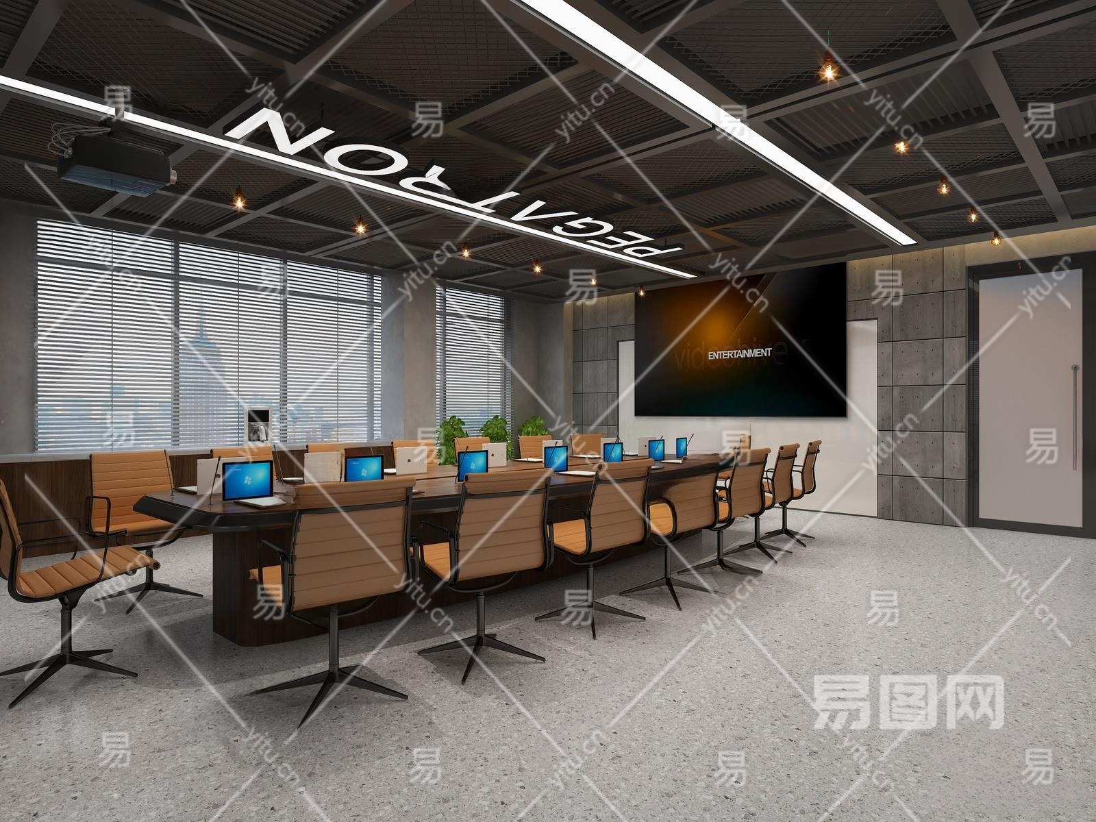 工业风会议室3D模型下载