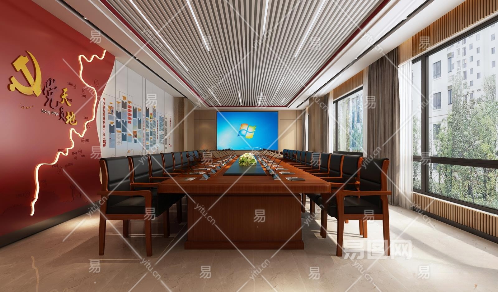 现代党建会议室3D模型下载