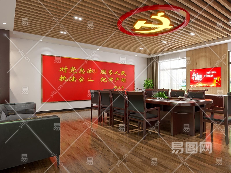 新中式党建会议室3D模型下载