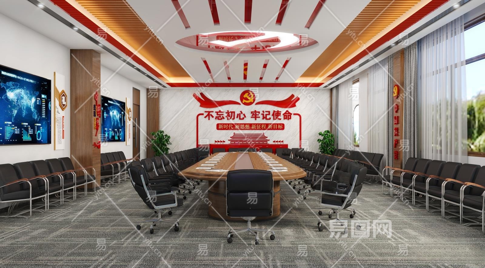现代党建会议室3D模型下载