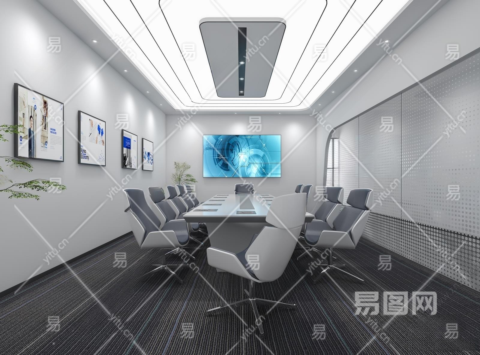 现代会议室3D模型下载
