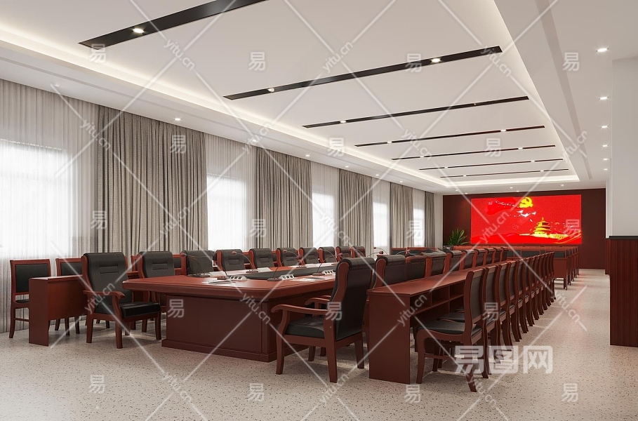 现代党建会议室3D模型下载