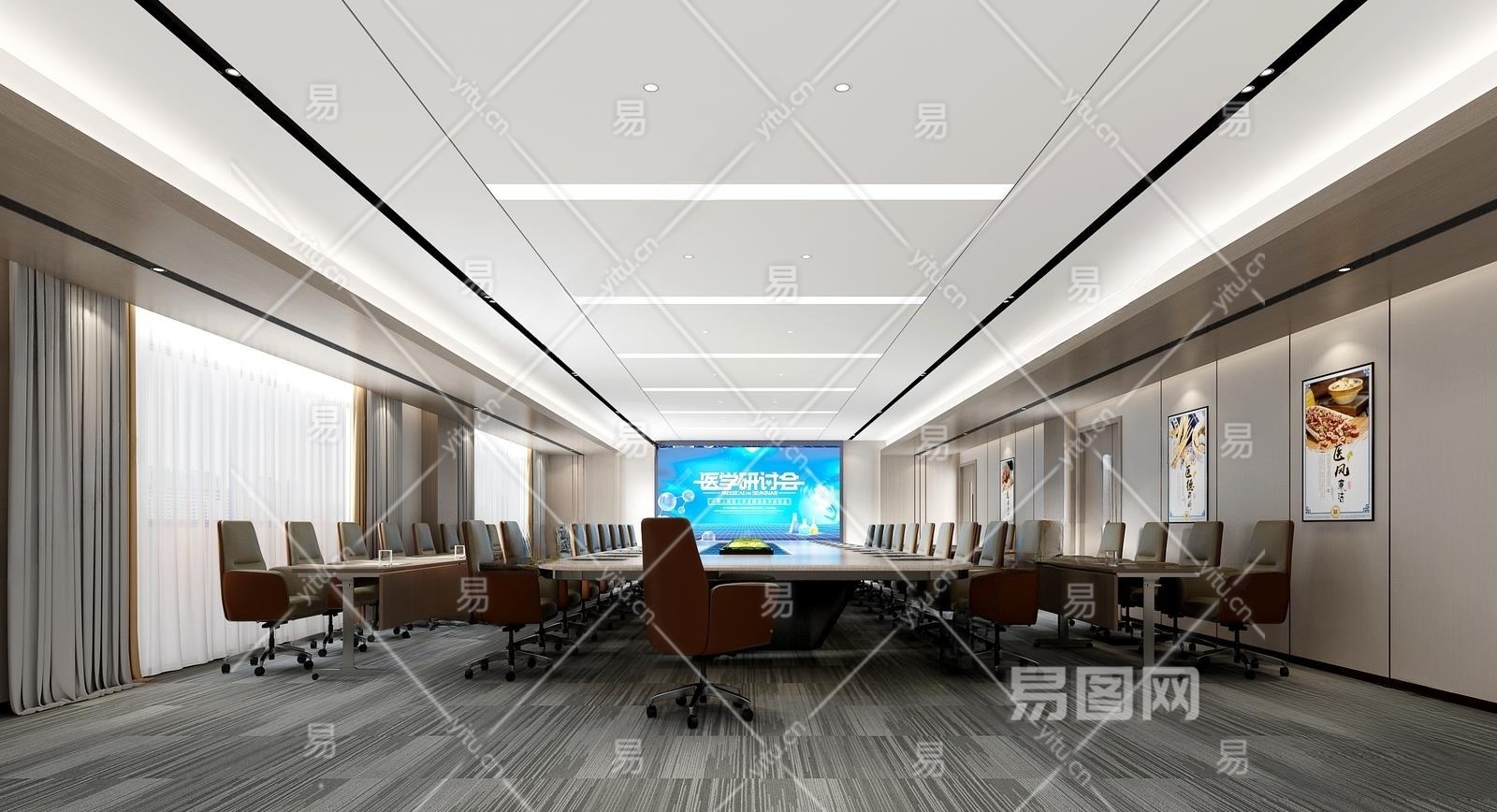 现代会议室3D模型下载