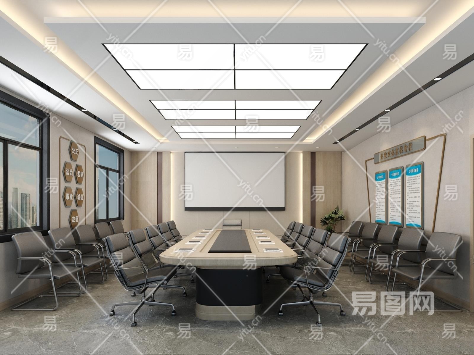 现代会议室3D模型下载