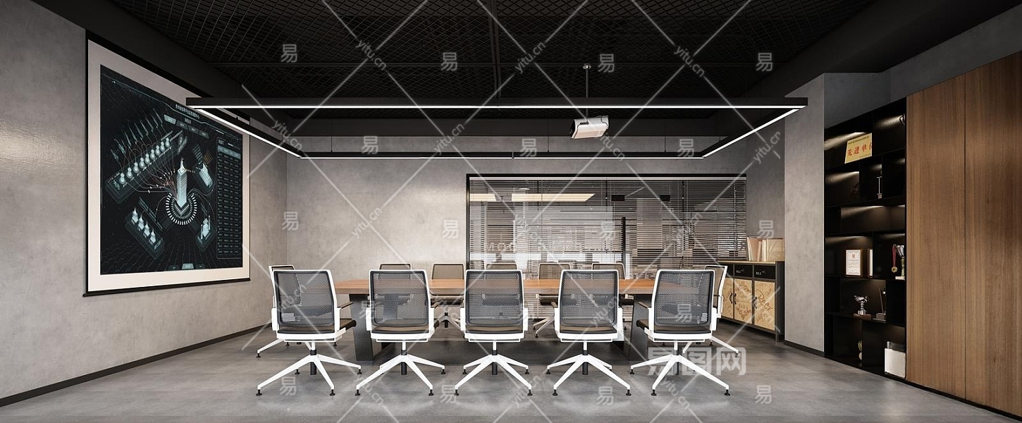 工业风会议室3D模型下载