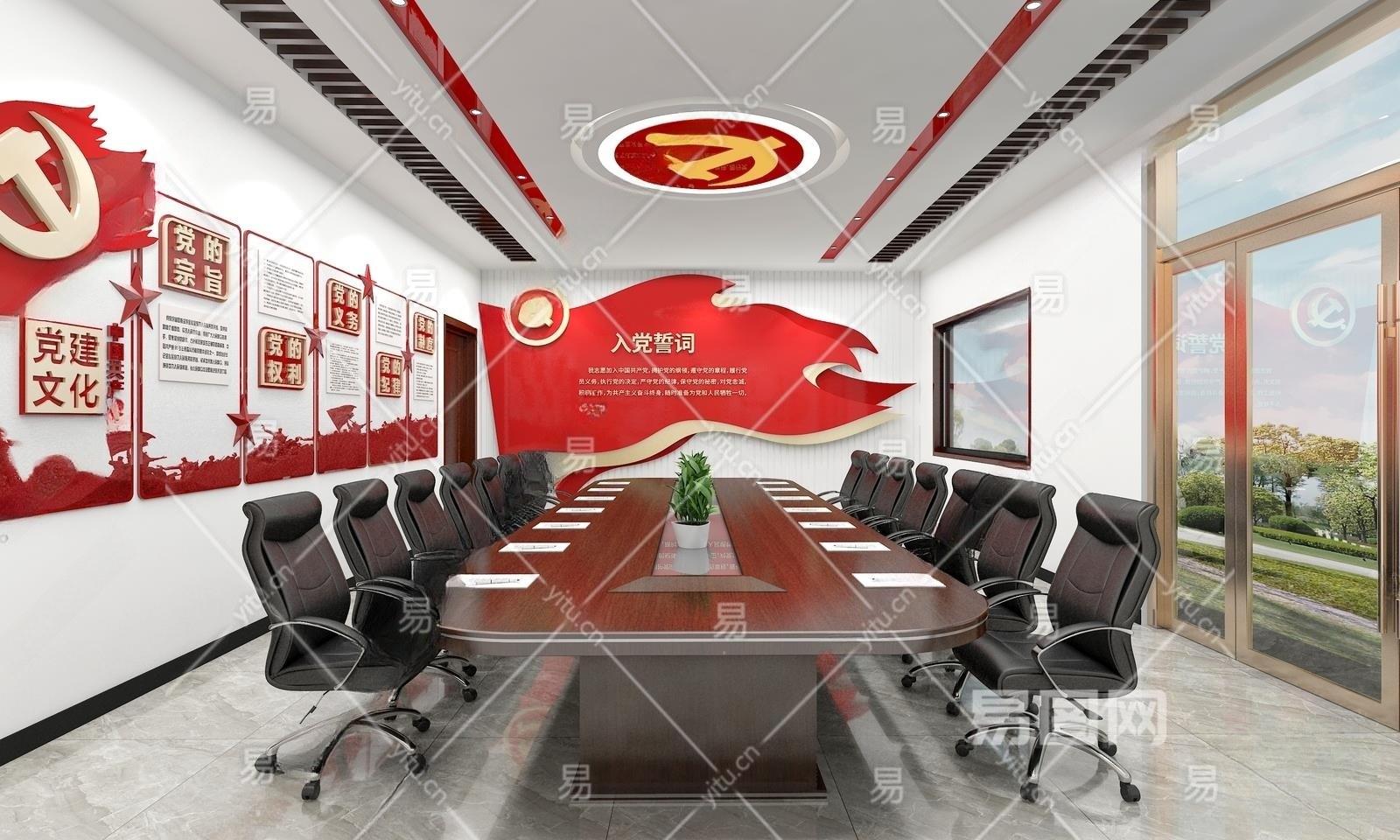 现代党建会议室3D模型下载