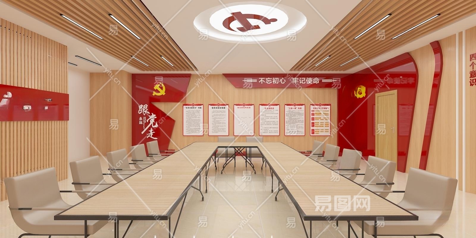 现代党建会议室3D模型下载