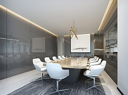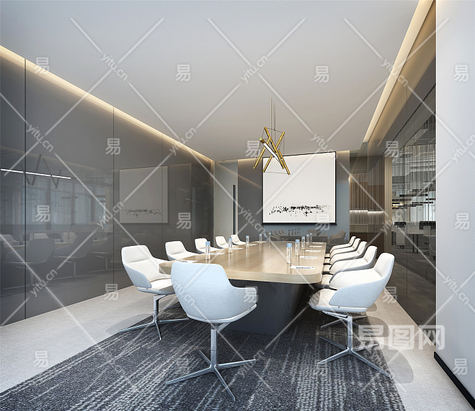 现代多功能会议室 办公空间 会议桌椅 投影仪 幕布 吊灯