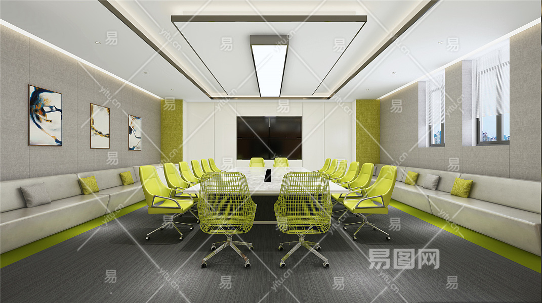 现代多功能会议室 办公空间 电子屏 会议桌椅 卡座沙发