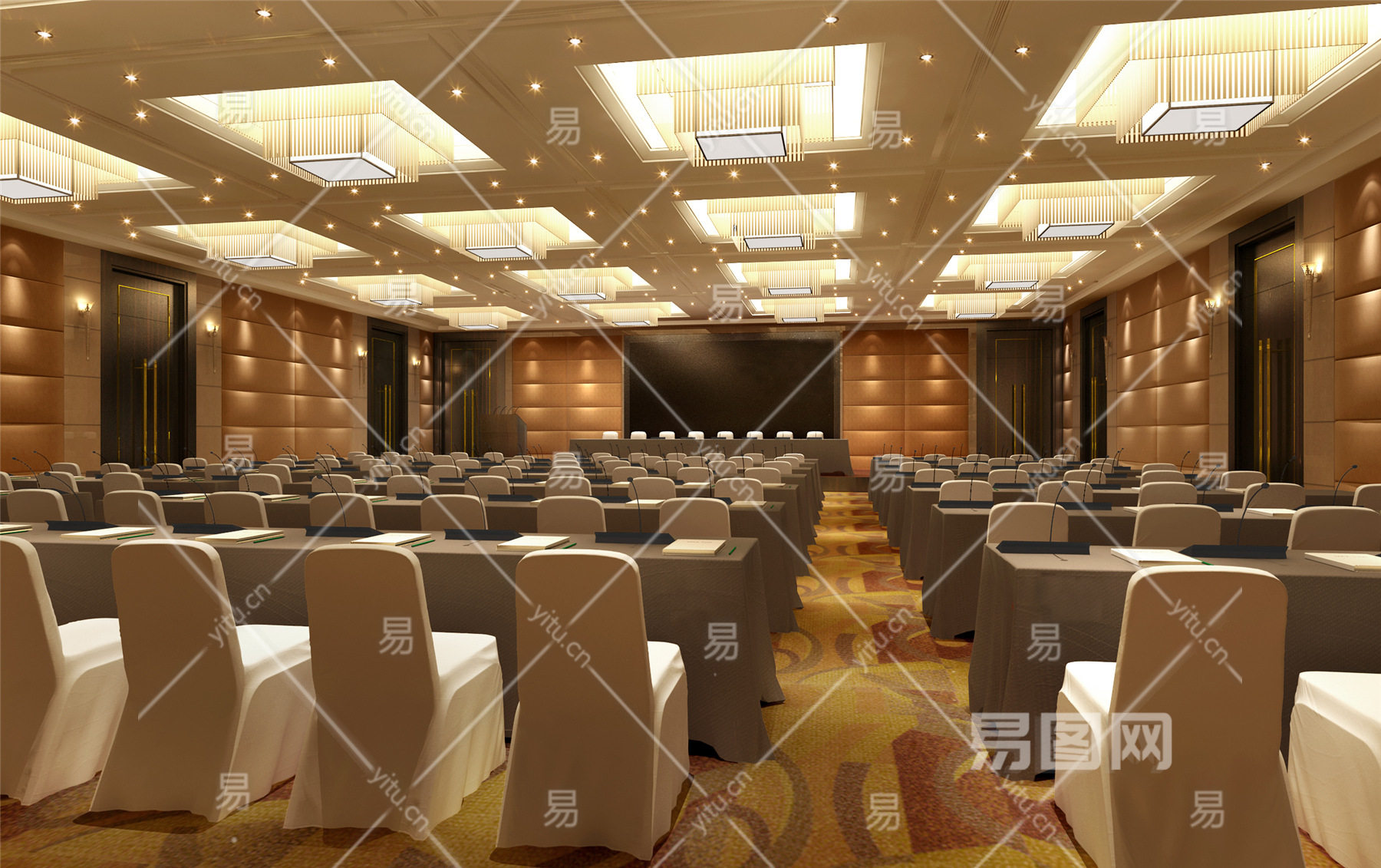 当前的位置:首页 > 3D模型 > 通用空间 > 会议室 > 新中式会议室 壁画 花格 屏风 水晶吊灯 矿泉水 讲台
