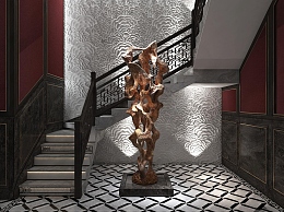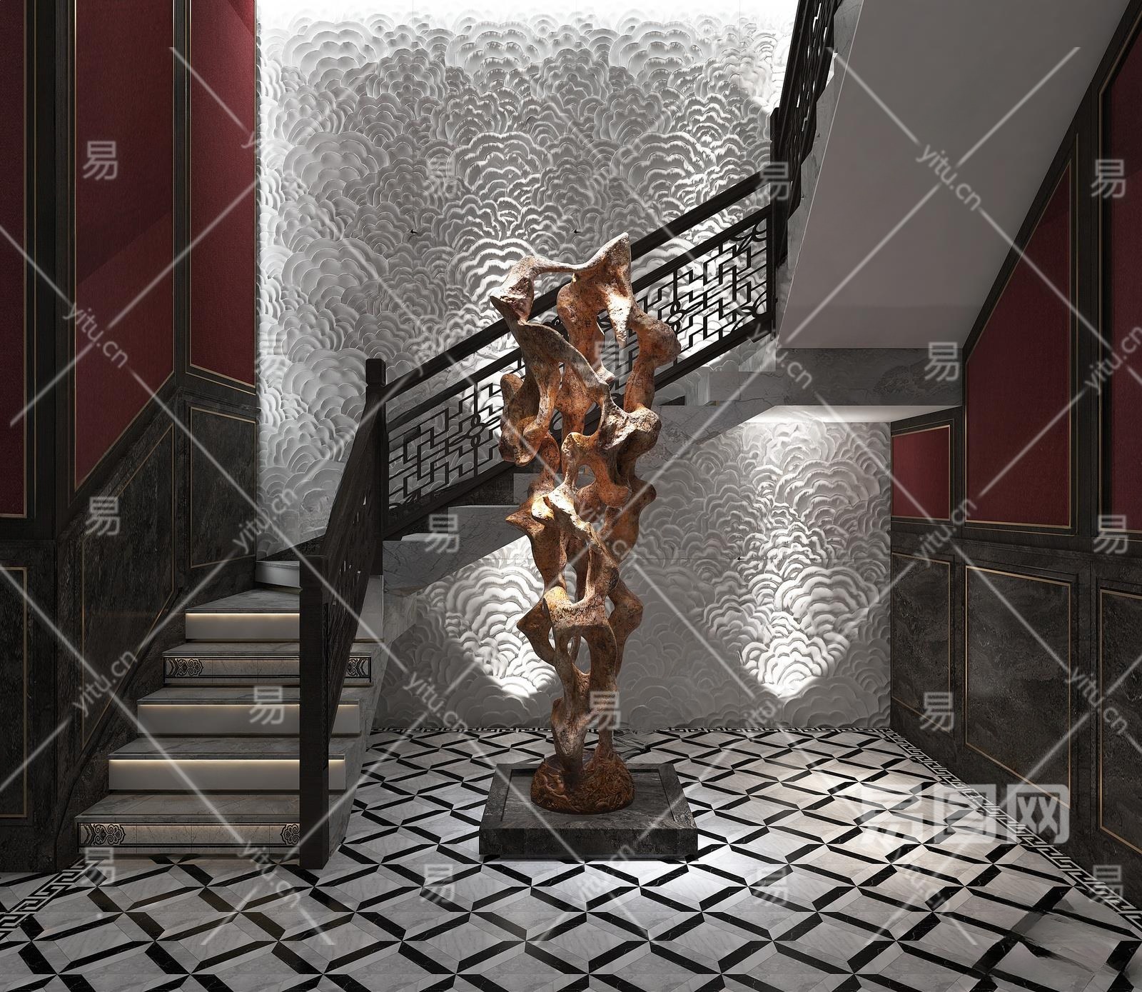 新中式楼梯间3D模型下载