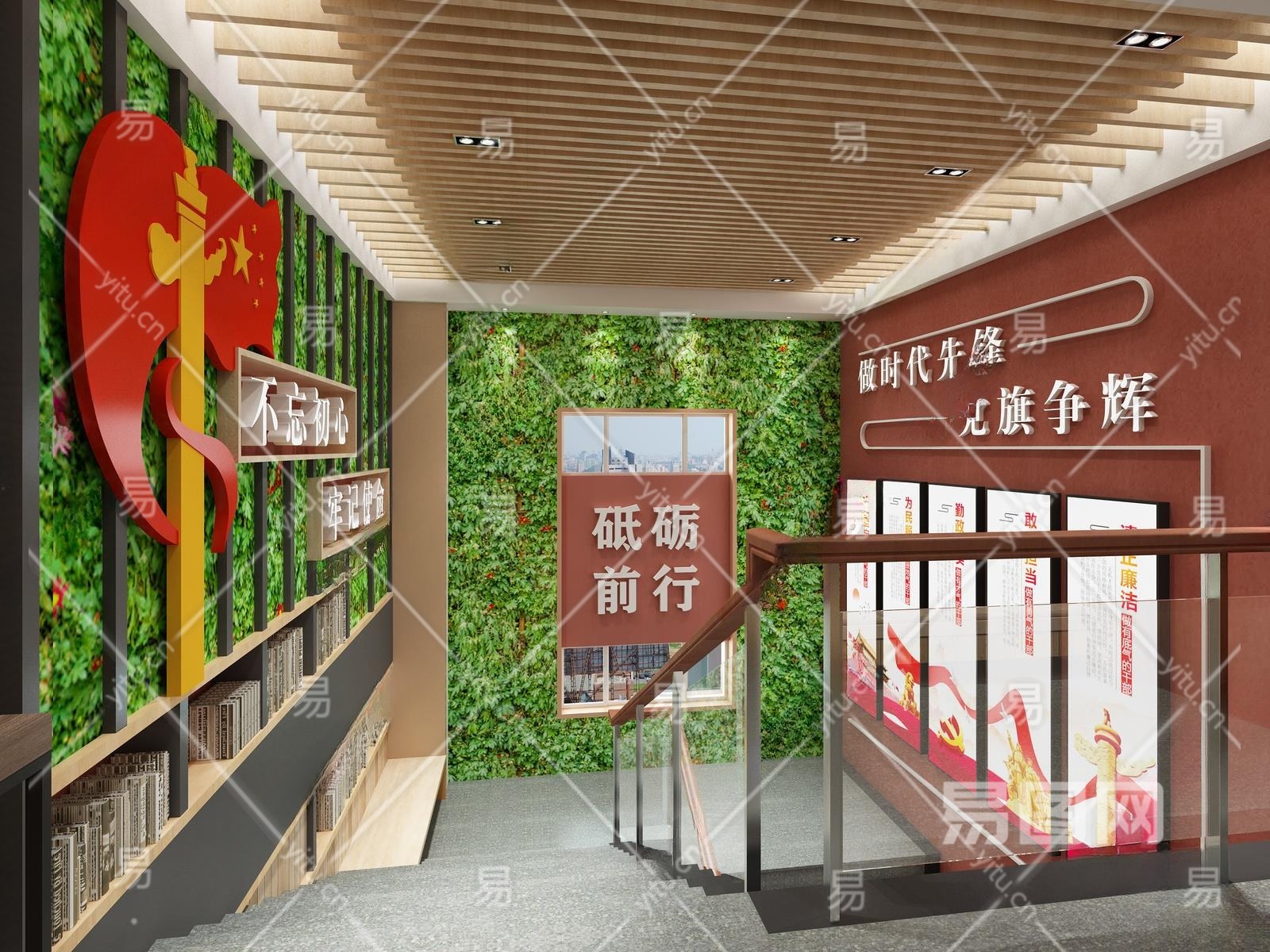 新中式党建展厅楼梯间3D模型下载