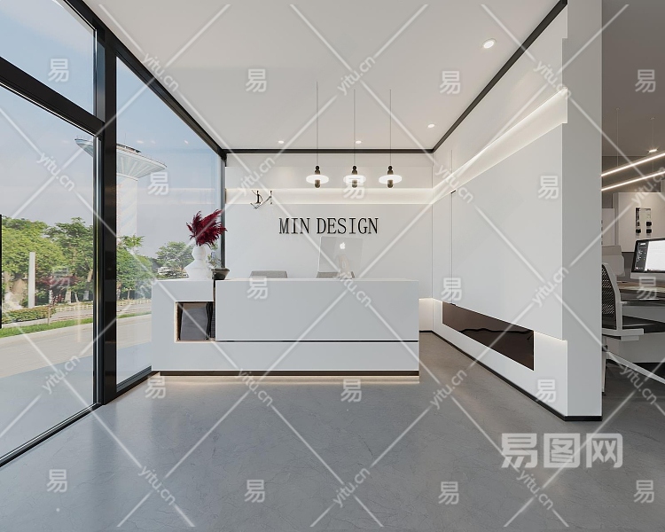 现代办公前台3D模型下载