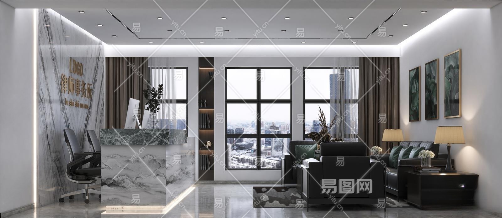 现代律师事务所前台3D模型下载