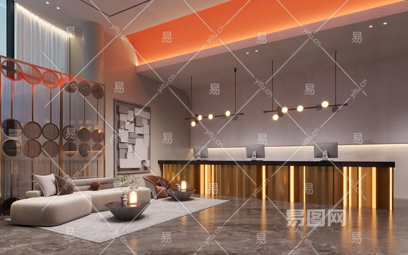 现代酒店前台3D模型下载
