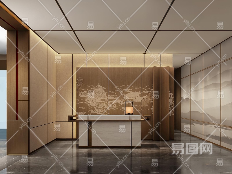 新中式酒店前台3D模型下载