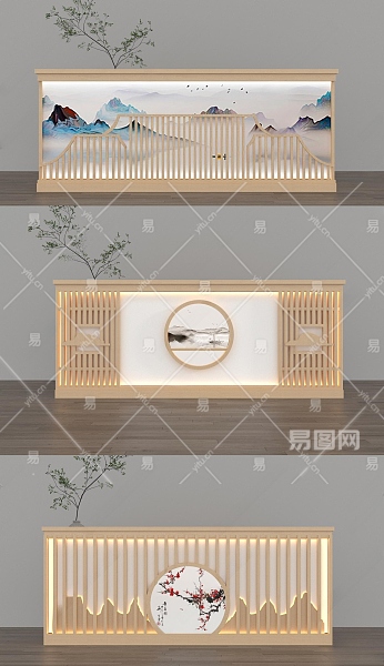 新中式接待台3D模型下载