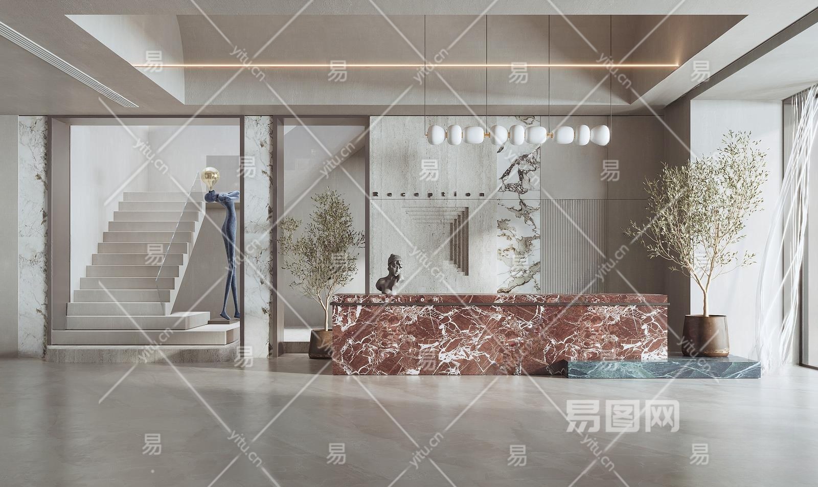 现代酒店前台3D模型下载