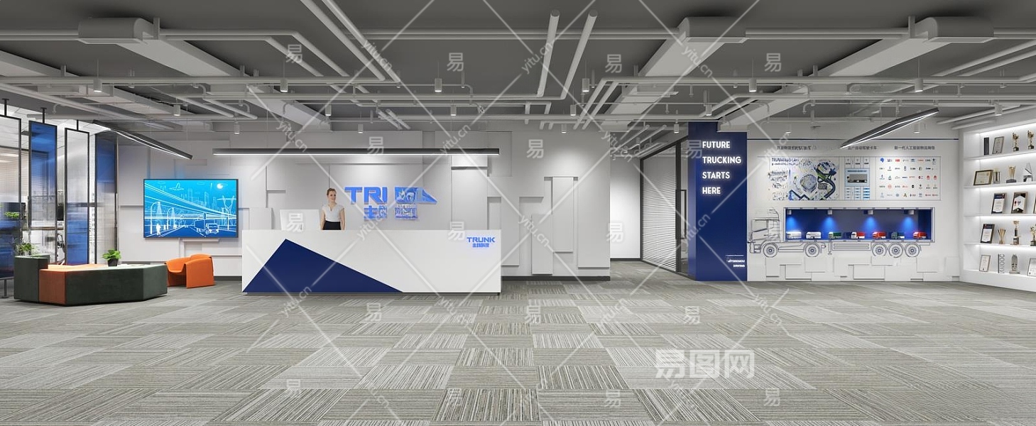 现代办公室前台3D模型下载